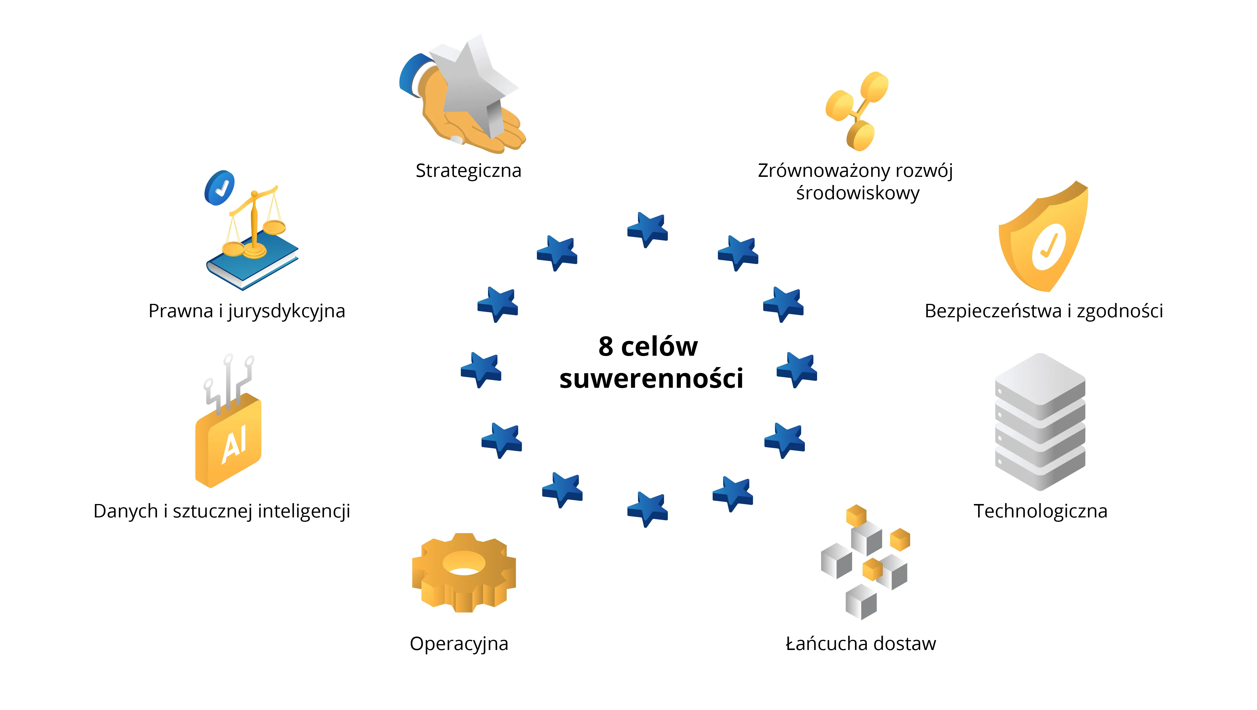 - suwerenność bezpieczeństwa i zgodności: operacje związane z bezpieczeństwem oraz procesy służące zapewnieniu zgodności uwzględniają wymagania prawne UE.